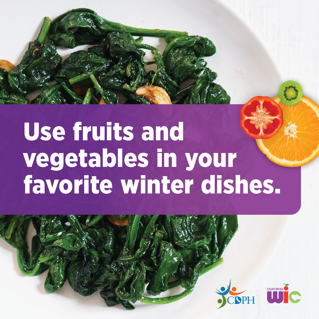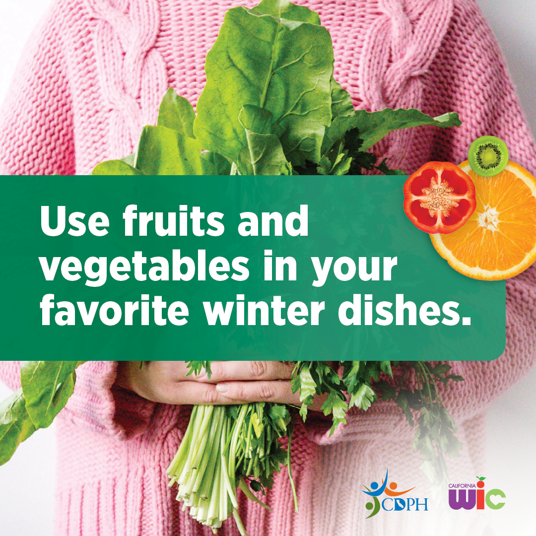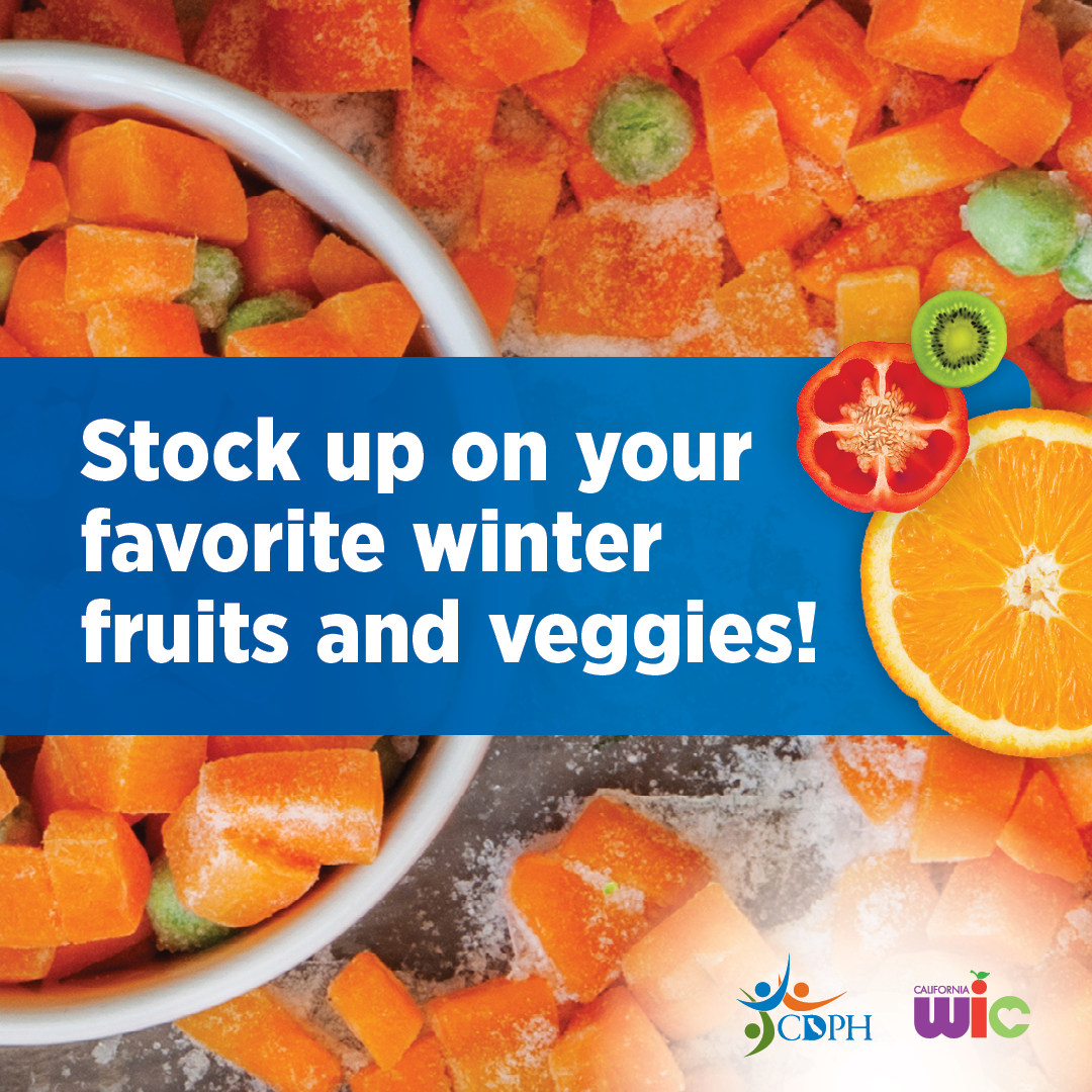 8. Stock up on more winter fruits and vegetables! Learn more about the Fruits and Vegetables Benefit increase: MyFamily.WIC.ca.gov. (128 characters)