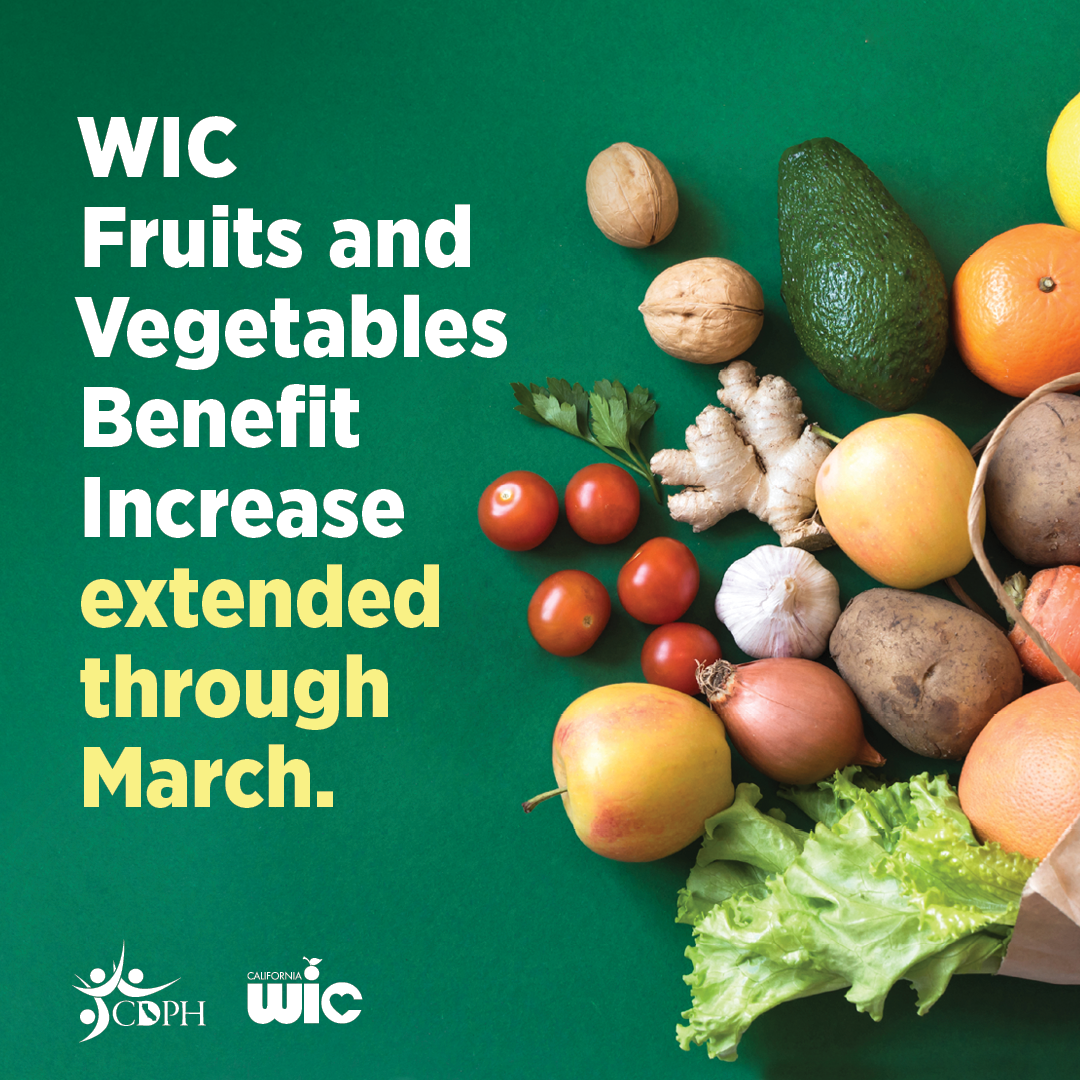 5. Get extra fruits and veggies through March! Learn more about the new benefit increase at MyFamily.WIC.ca.gov. (109 characters)