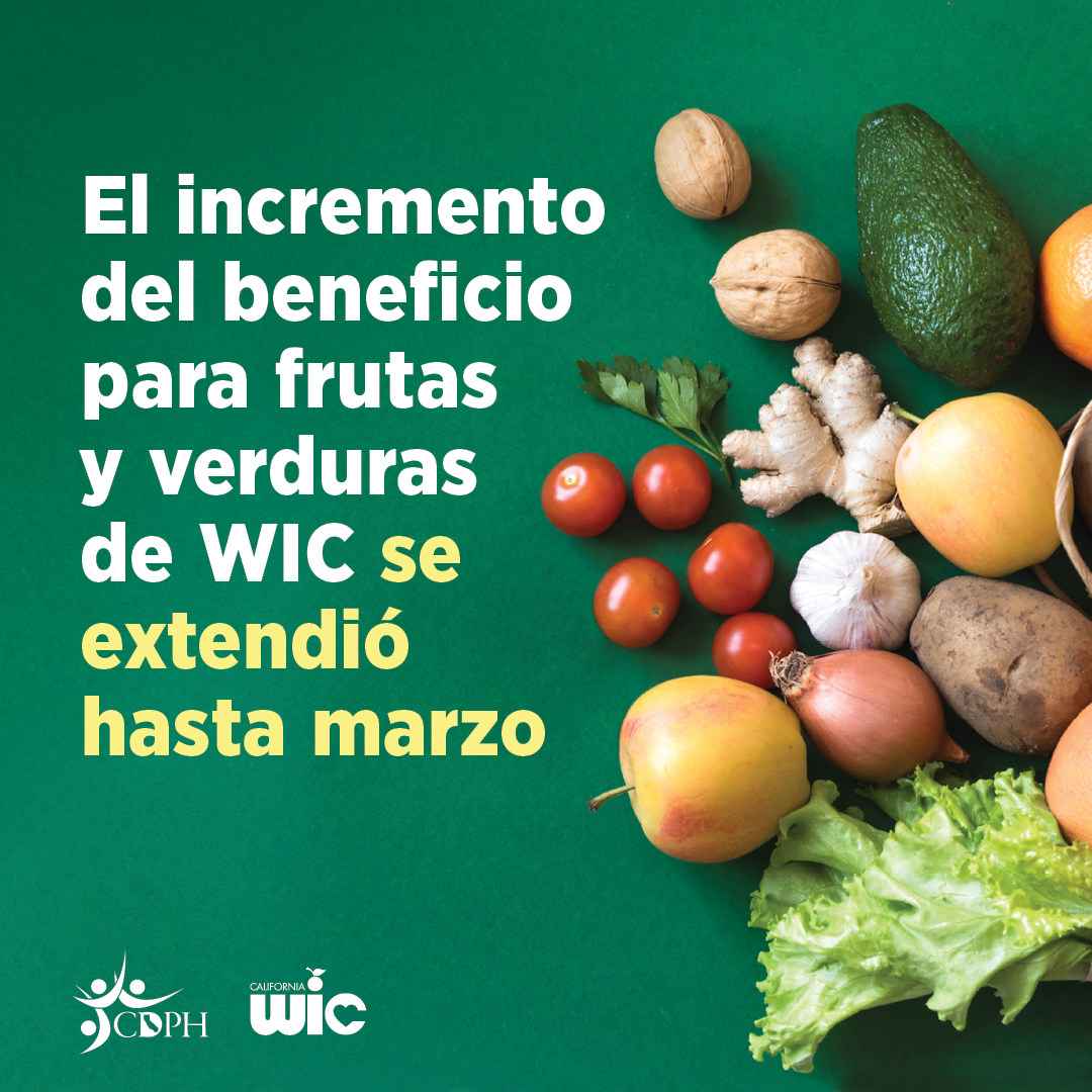 3. ¡Disfrute del nuevo incremento del beneficio para frutas y verduras hasta marzo! Más información en MyFamily.WIC.ca.gov. (120 characters)