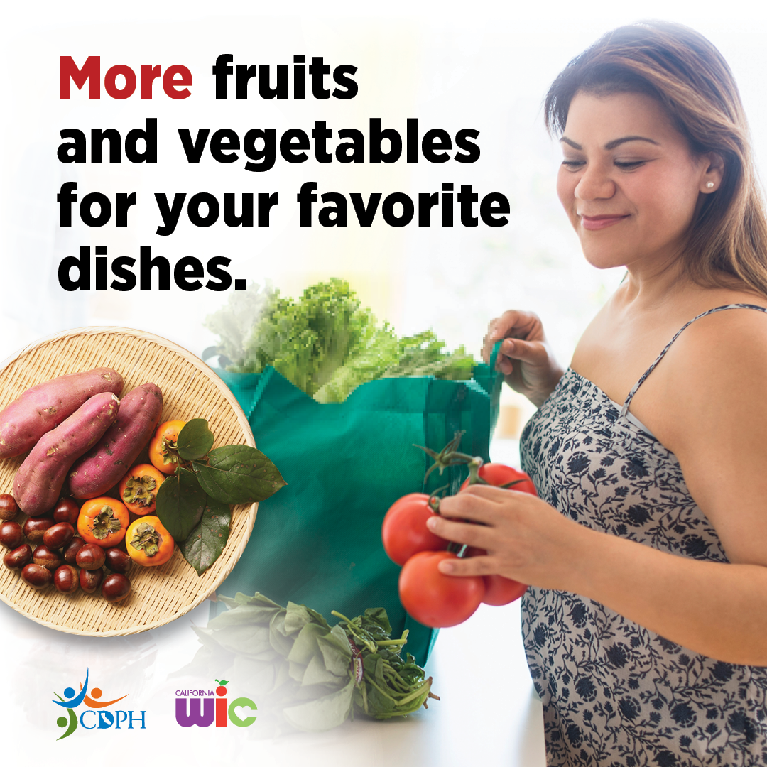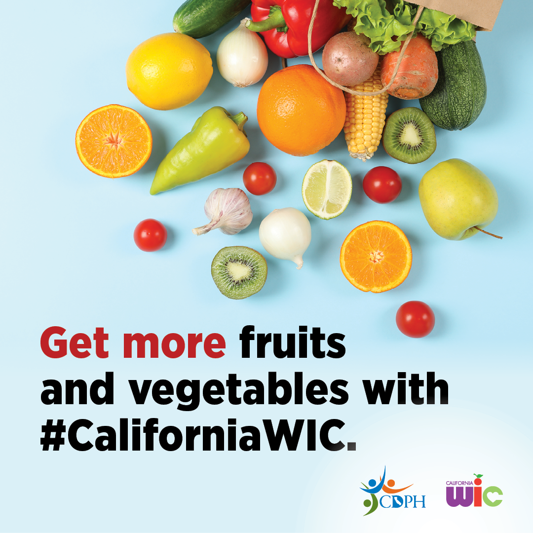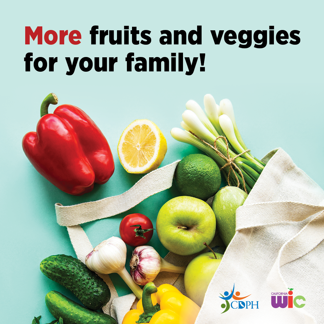 6. Shop for more fruits and vegetables Oct through Dec with your Fruits and Vegetables Benefit. Find approved grocers and farmers at MyFamily.WIC.ca.gov. (150 characters)