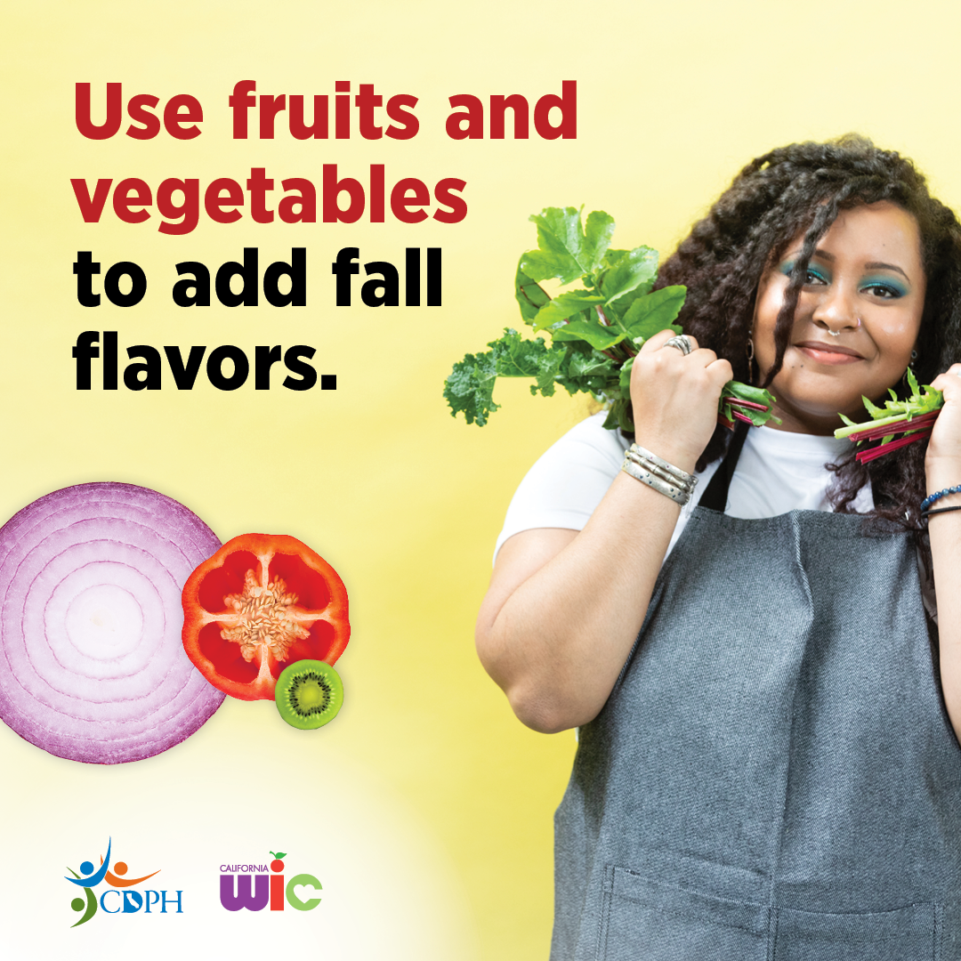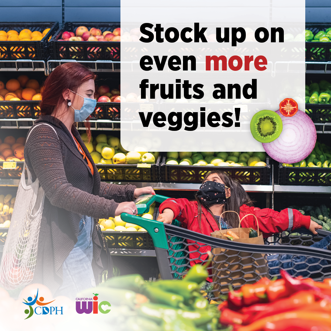 8. Stock up on more fruits and vegetables this fall! Learn more about the new Fruits and Vegetables increase at MyFamily.WIC.ca.gov. (129 characters)