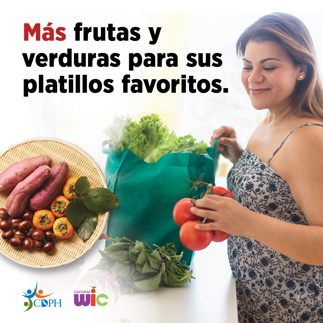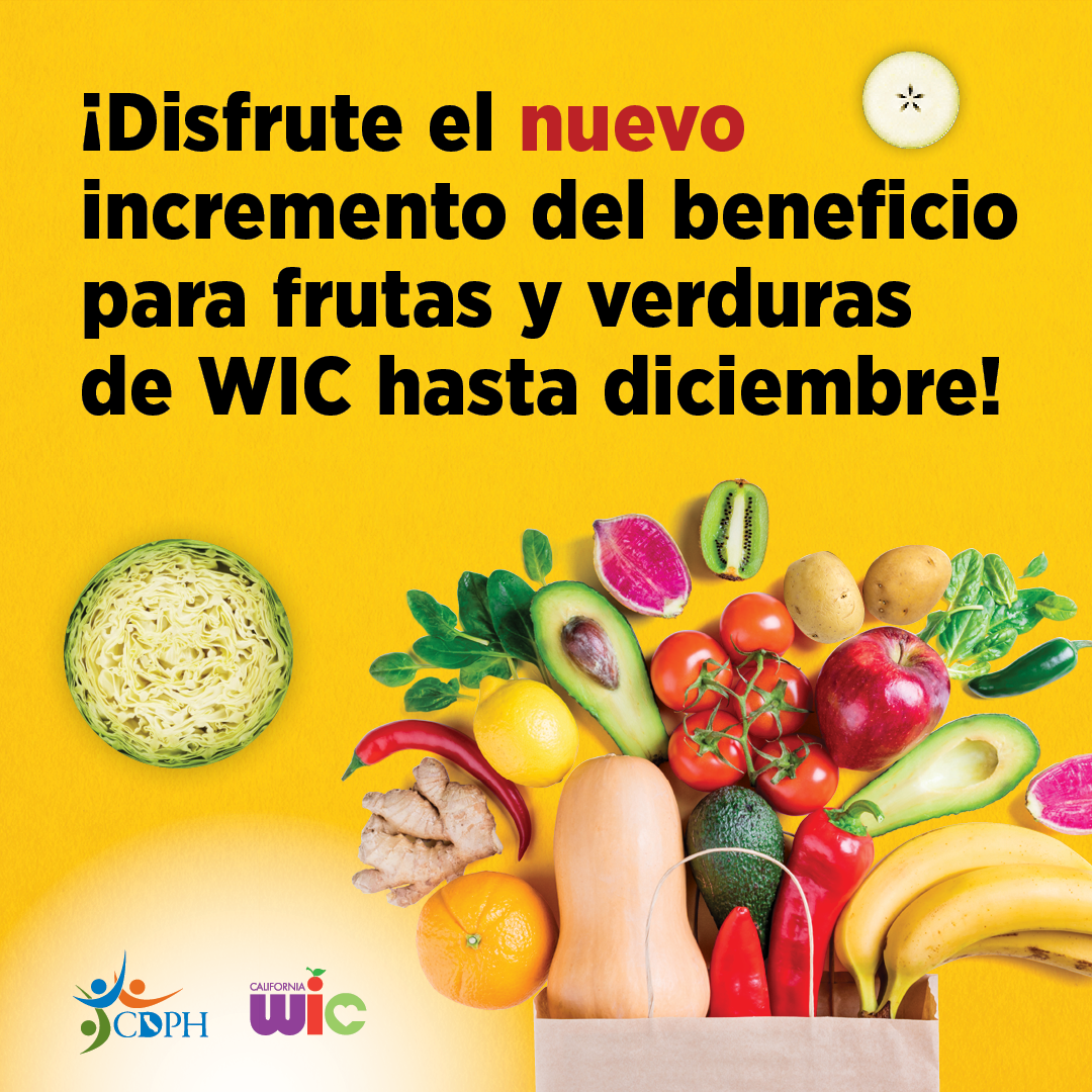 9. El nuevo monto mensual para frutas y verduras es $24 para niños, $43 para personas embarazadas o en postparto y $47 en periodo de lactancia. Info: MyFamily.WIC.ca.gov (166 characters)