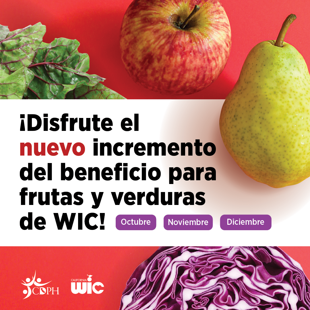 5. ¡Adquiera más frutas y verduras de octubre a diciembre! Infórmese sobre el nuevo incremento en el beneficio en MyFamily.WIC.ca.gov. (131 characters)