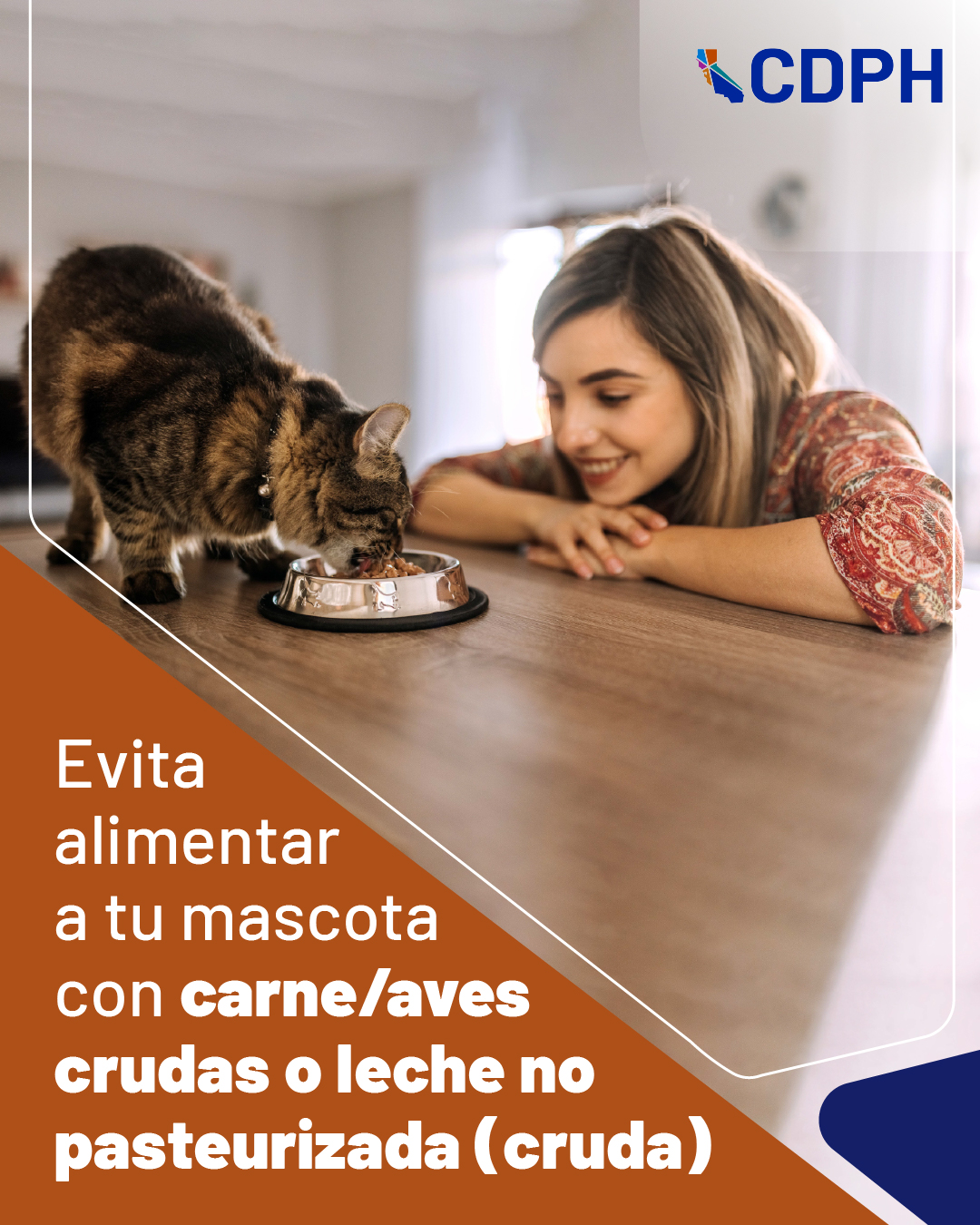 - Evita alimentar a tu mascota con carne/aves crudas, incluidos los alimentos crudos para mascotas o la leche no pasteurizada (cruda)