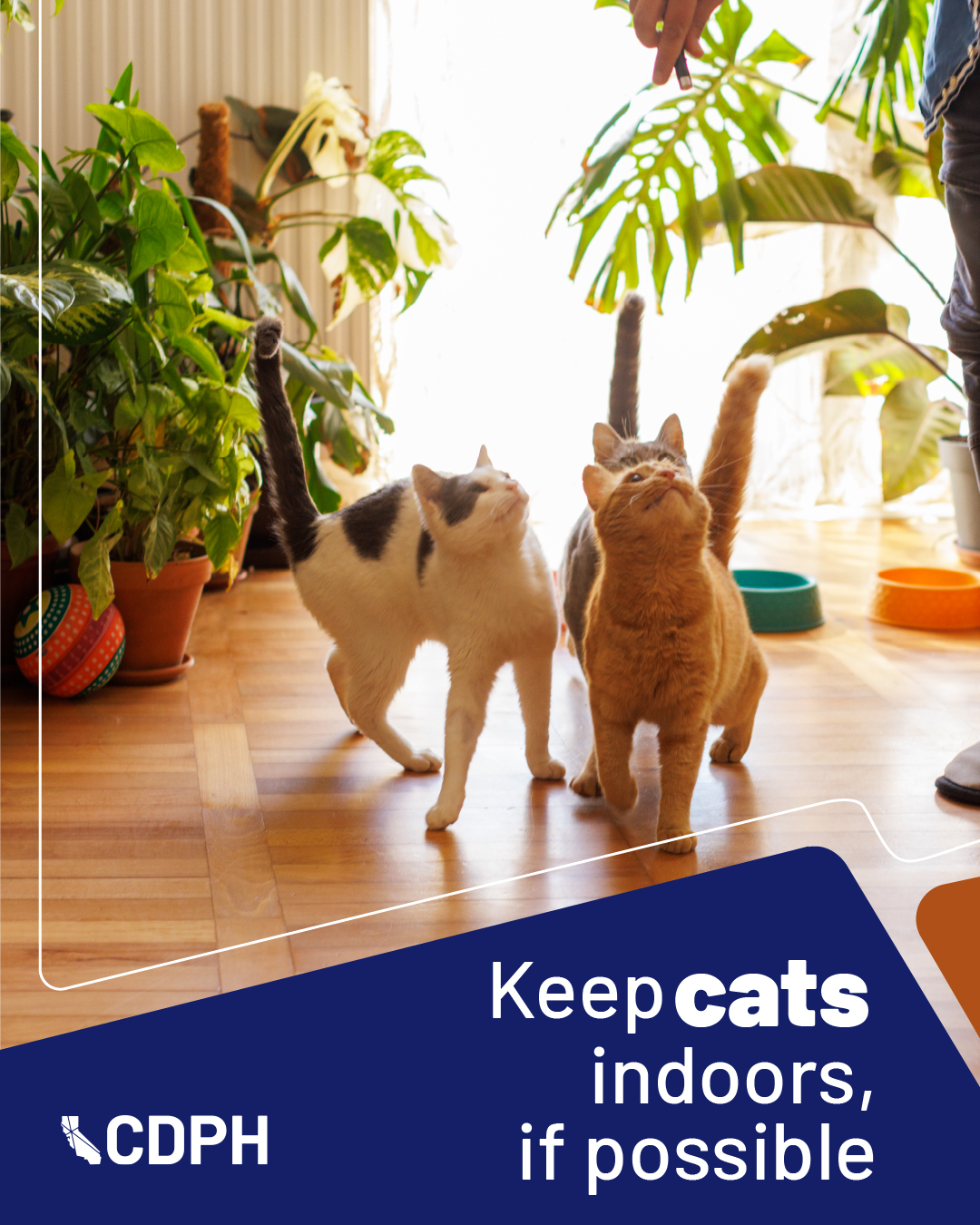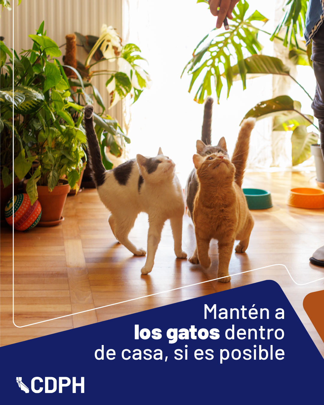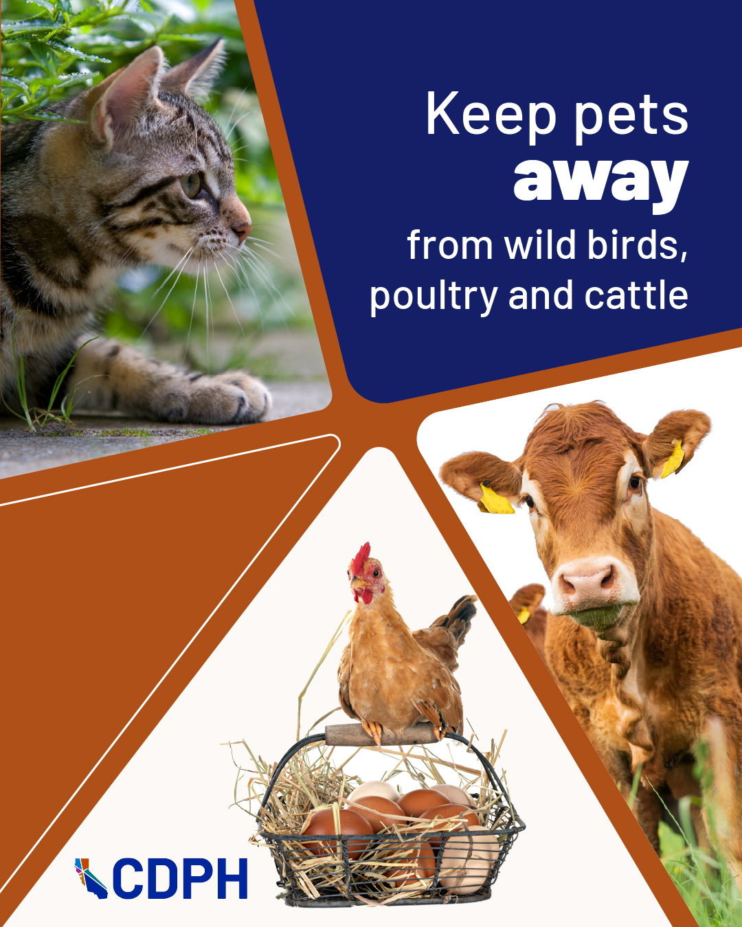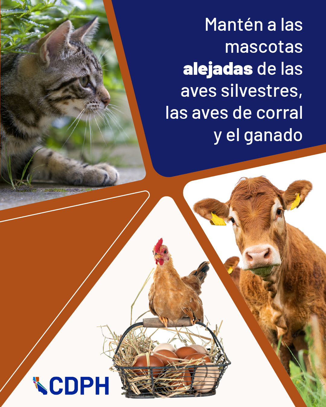 Suggested Messaging: La gripe aviar se ha encontrado en aves de corral, vacas lecheras y gatos domésticos en California. La gripe aviar puede ser grave y provocar la muerte de los animales.