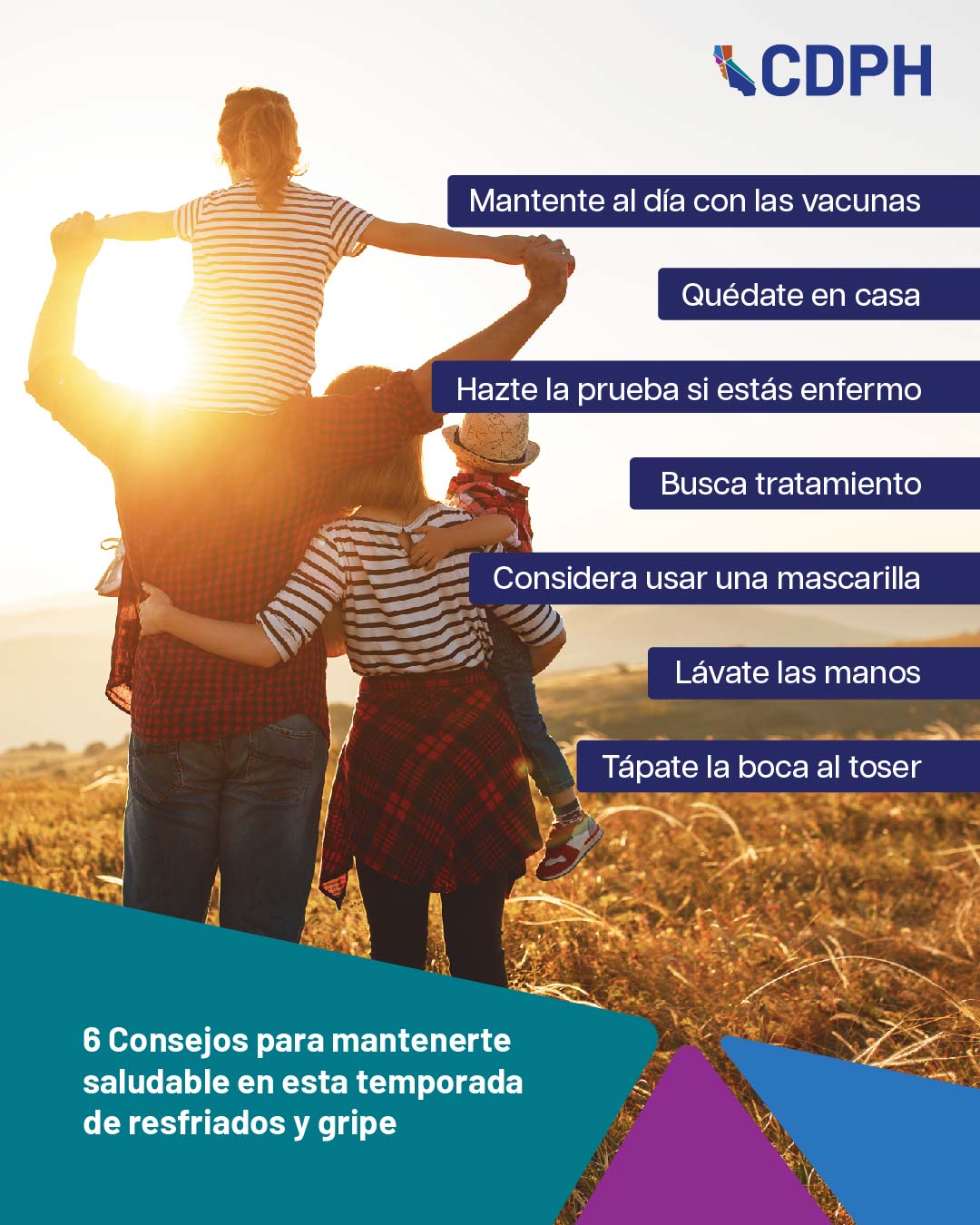 Suggested Messaging: Feeling sick? Stay home and away from others so you don’t spread respiratory viruses like flu, COVID-19 and RSV. Call your doctor - they might recommend a prescription treatment to prevent your illness from becoming serious. Learn more: go.cdph.ca.gov/respiratory-viruses