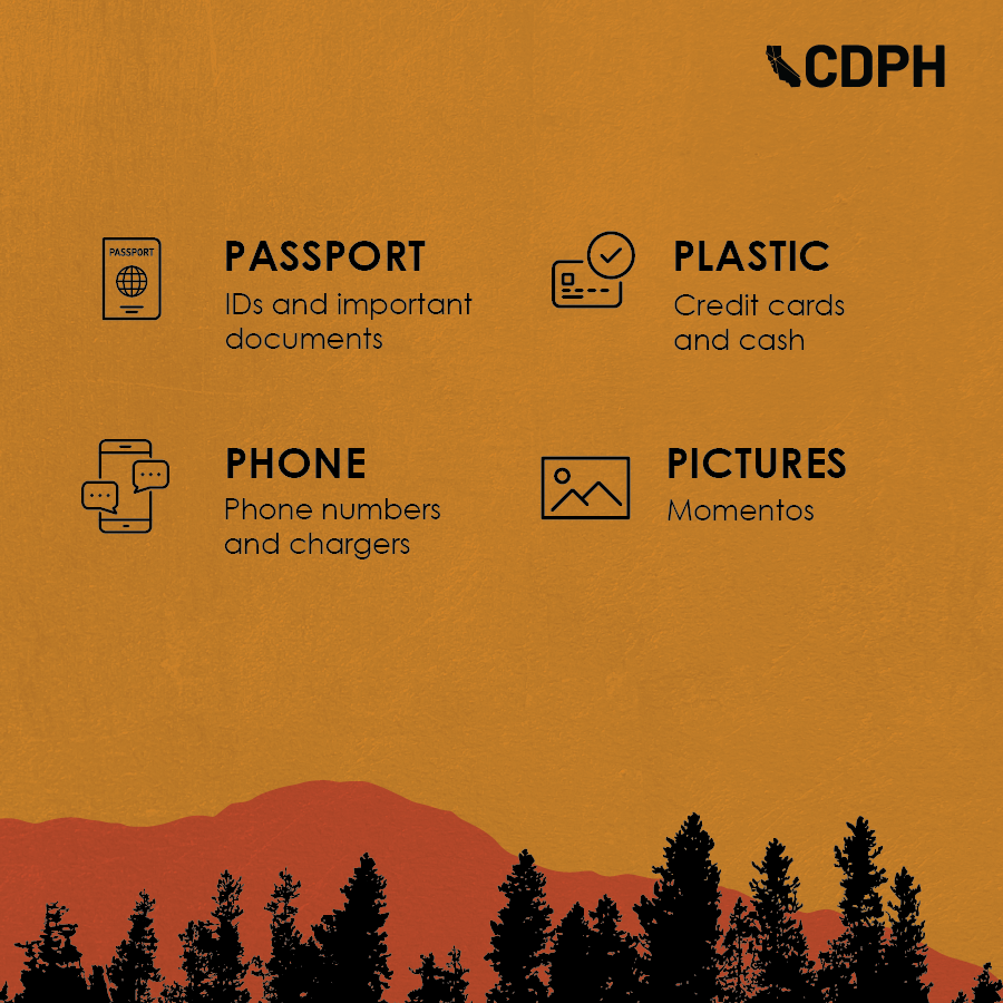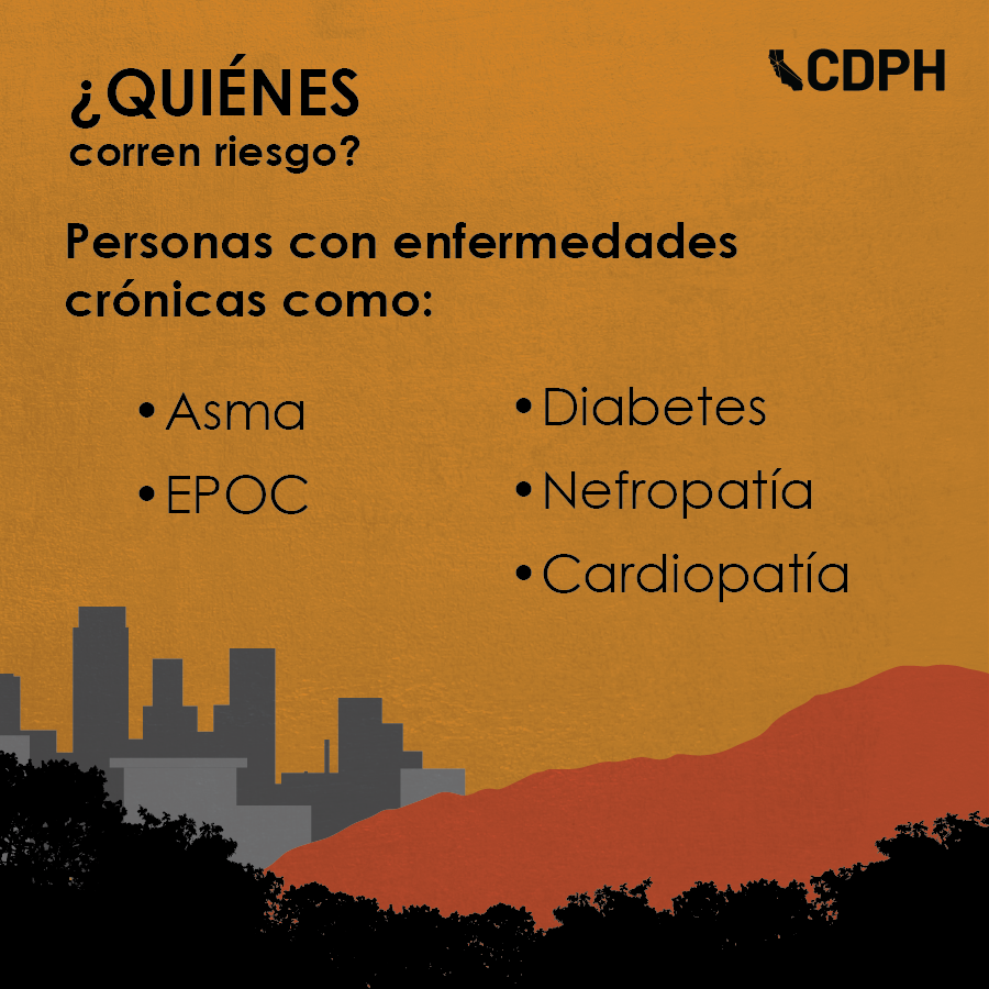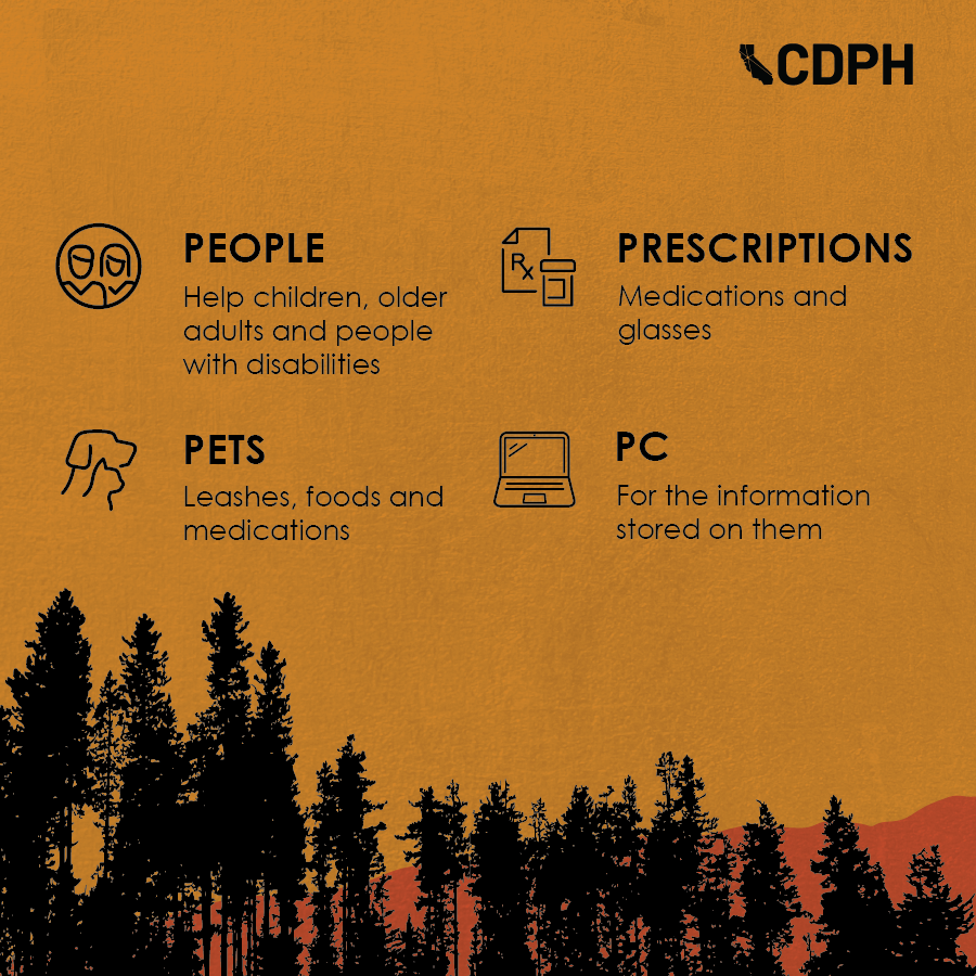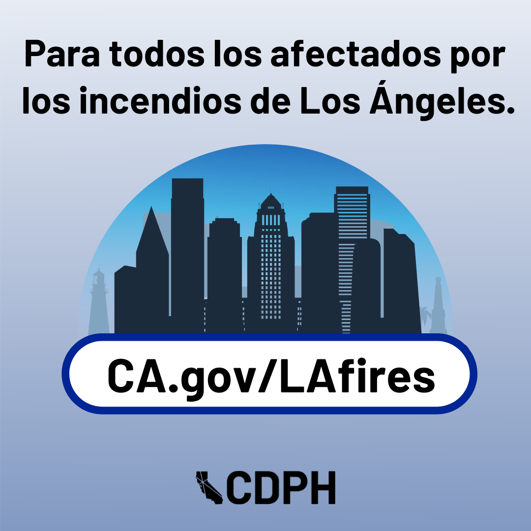 Obtén información sobre las mejores maneras de prepararte para los incendios forestales en https://www.cdph.ca.gov/Programs/EPO/Pages/Wildfire%20Pages/Wildfires--.aspx