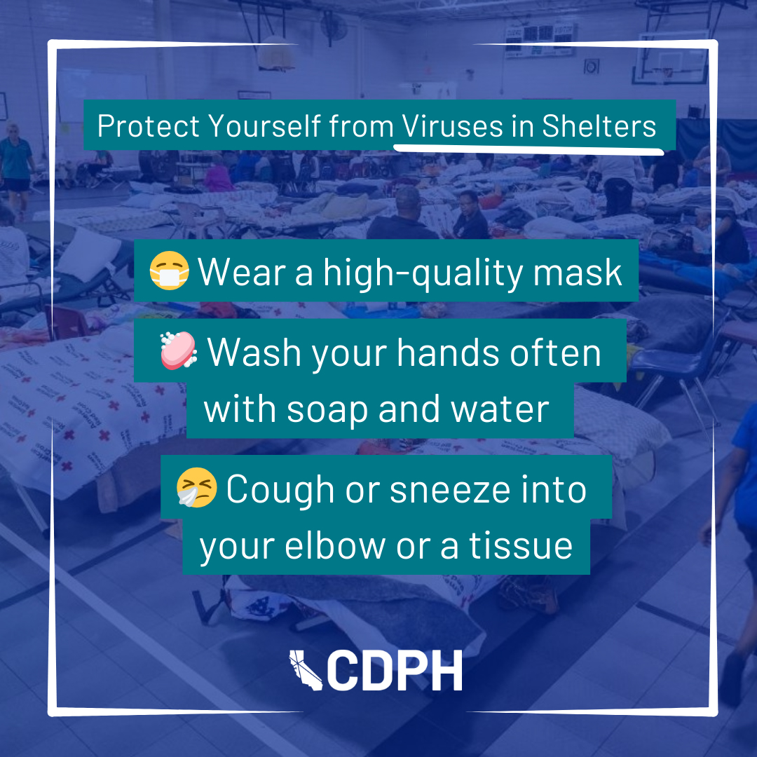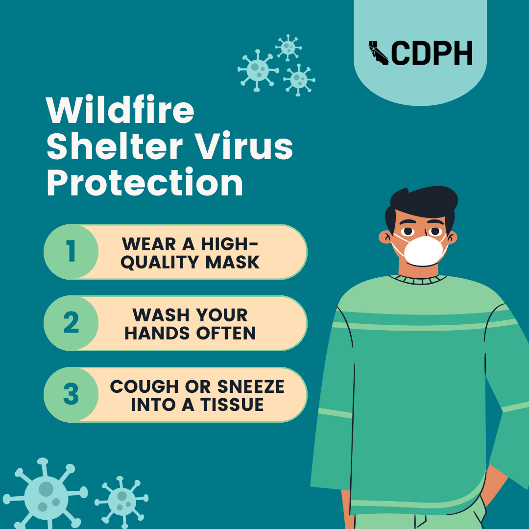 Durante las evacuaciones por incendios forestales, los riesgos para la salud van más allá del humo. Los virus como la gripe, el COVID-19, el VRS y el norovirus pueden propagarse rápidamente en espacios concurridos. A continuación, le indicamos cómo mantenerse seguro mientras está en un refugio: