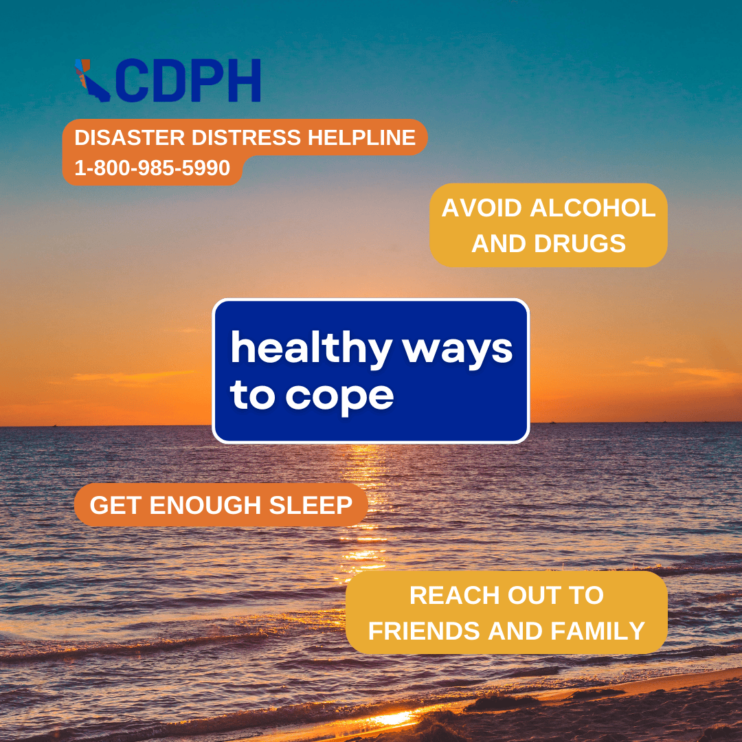 Si tu o alguien que conoces está experimentando angustia emocional debido a los incendios forestales, llama a la Línea de Ayuda gratuita para Desastres al 1-800-985-5990. Más información en