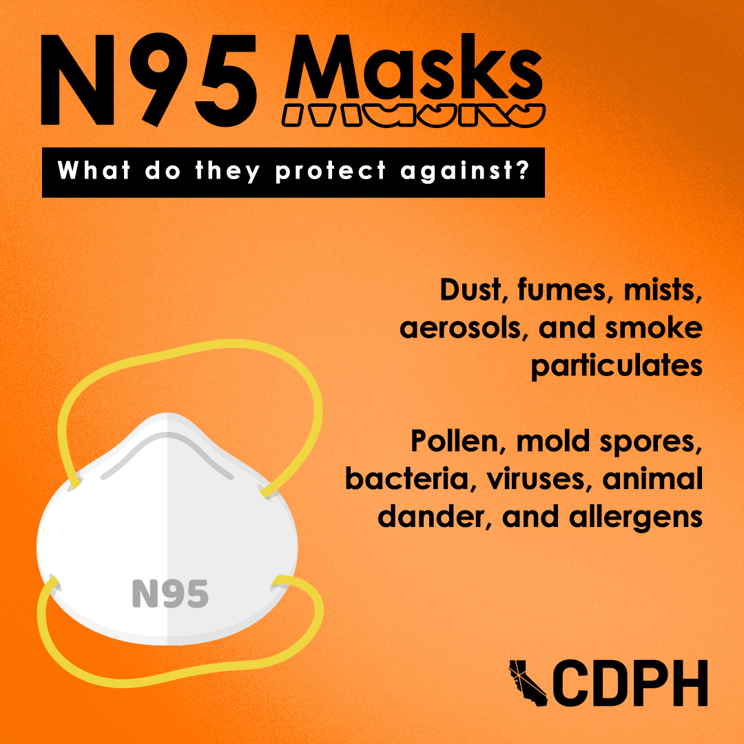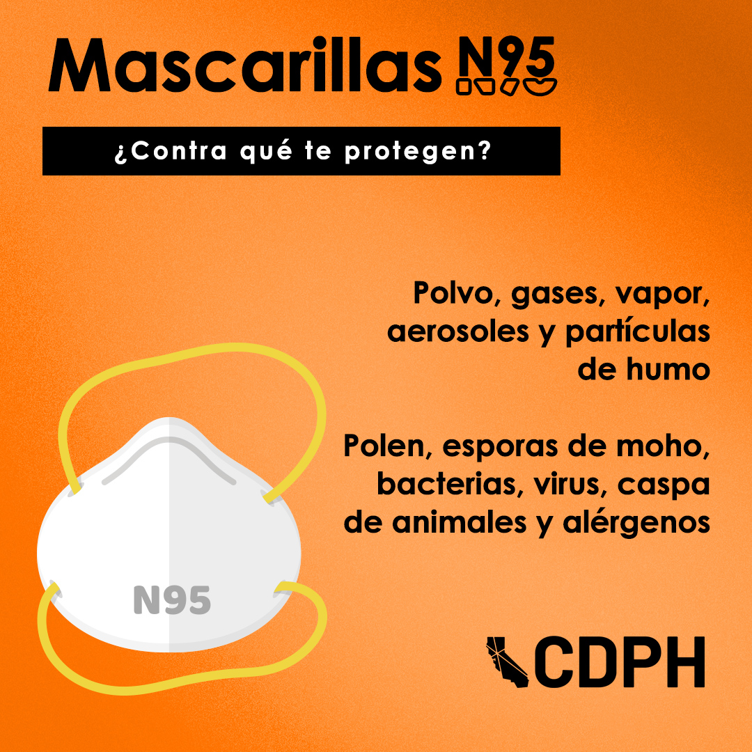 Las mascarillas N95 (así como las K95 y KN94) pueden filtrar los contaminantes, incluyendo el humo de los incendios forestales y proteger la respiración. Para obtener más información sobre mascarillas y seguridad contra incendios forestales, visita: