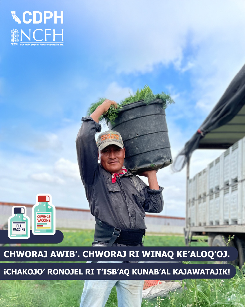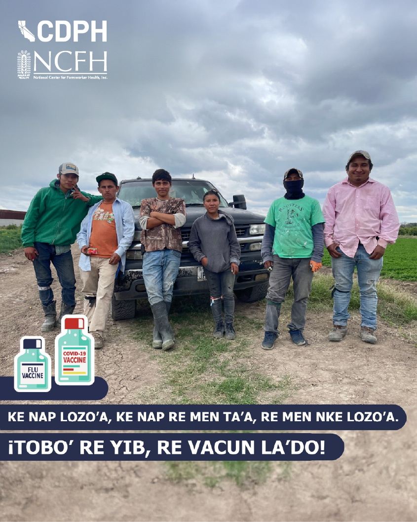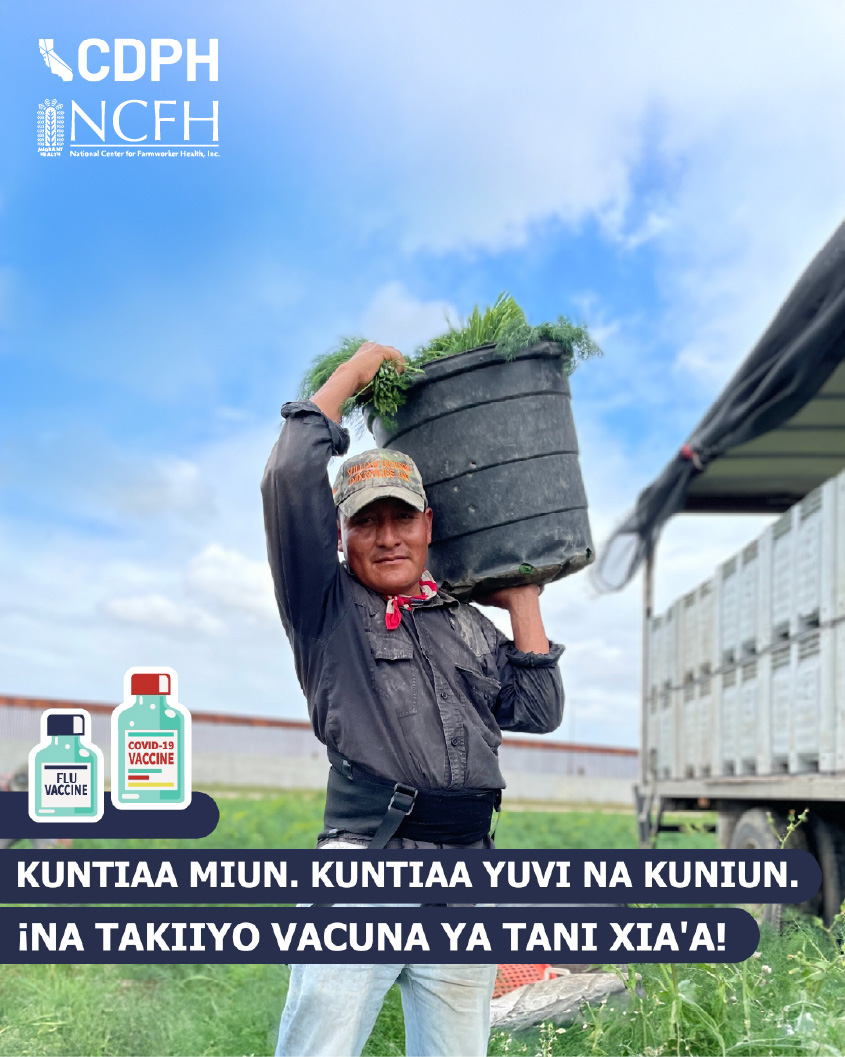 Suggested Messaging: ​The most recent flu and COVID-19 vaccines can​ help protect farmworkers and their families. ​Staying up to date with vaccinations against flu and COVID-19  is an important step you can take to protect yourself and your family.