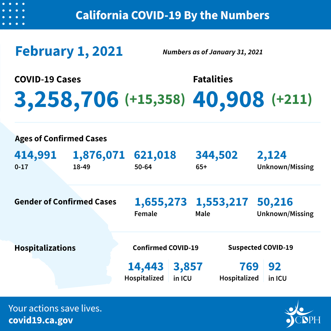 In order to increase the pace of COVID-19 vaccine distribution to those at greatest risk, the state is prioritizing individuals 65 and older to receive the vaccine as demand subsides among health care workers. This effort will help to reduce hospitalizations and safe lives. To sign up for a notification when you're eligible for a vaccine, please visit myturn.ca.gov. For more information on the vaccine effort, visit the Vaccinate All 58 webpage.